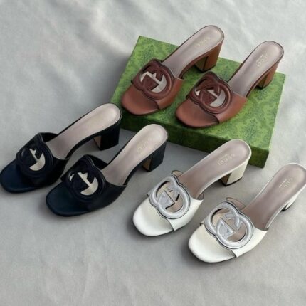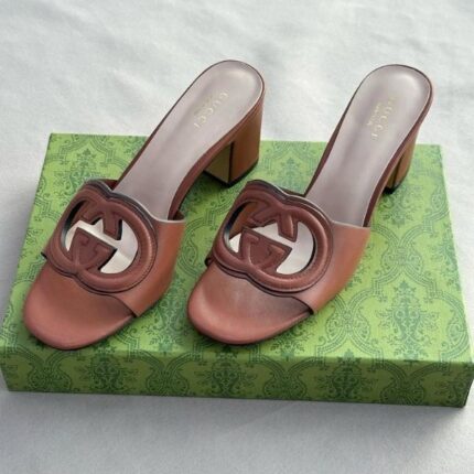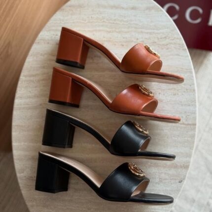 Gucci Interlocking G Block Heels Sandals Slip-Ons Shoes Brown