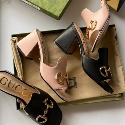 Gucci GG Canvas Leather with Horsebit Block Heels Pumps Sandals Slip-Ons Shoes Black