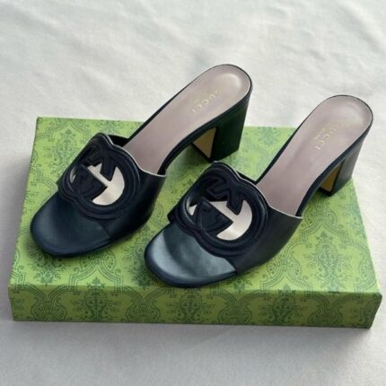Gucci Interlocking G Block Heels Sandals Slip-Ons Shoes Black