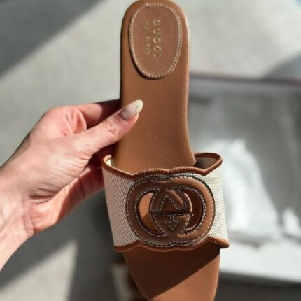 Gucci Interlocking GG Leather Flats Slides Slip-Ons Sandals Brown