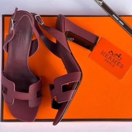 Hermes Eternite 80 Block Heels Sandals With Adjustable Back Strap Maroon