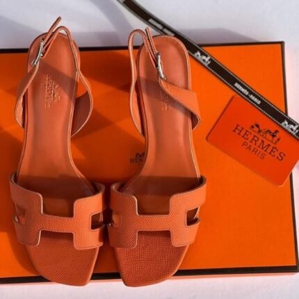 Hermes Eternite 80 Block Heels Sandals With Adjustable Back Strap Orange