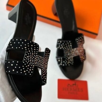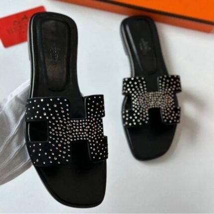 Hermès Embellished Outline Oran Flat Sandals Slip-Ons Slides Black