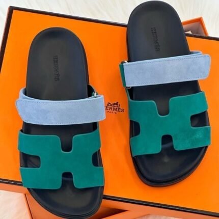 Hermès Chypre Suede Sandals Slippers Slip-On Slides Teal & Blue