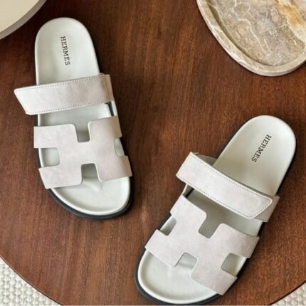 Hermès Chypre Suede Sandals Slippers Slip-On Slides White