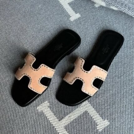 Hermès Embellished Outline Oran Flat Sandals Slip-Ons Slides Peach Pink