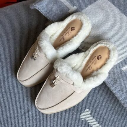 Loro Piana Charm Suede Fur Mules Slip-Ons Flats Shoes White