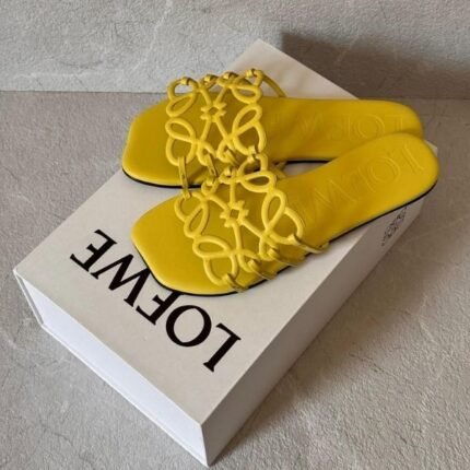 Loewe Petal Anagram Soft Calfskin Slides Flats Slip-Ons Sandals Yellow