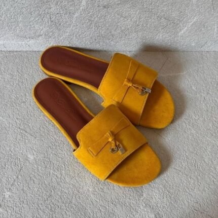 Loro Piana Charm Suede Slides Flats Slip-Ons Sandals Yellow