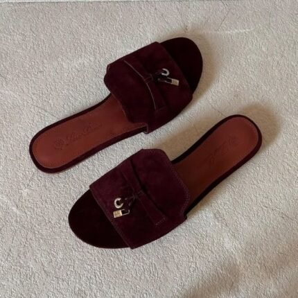 Loro Piana Charm Suede Slides Flats Slip-Ons Sandals Red