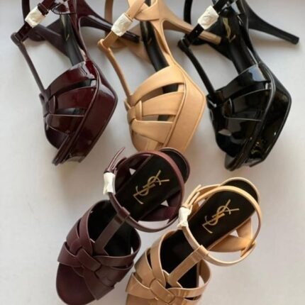 Yves Saint Laurent 105mm Classic Tribute Adjustable Strap High Heels Pumps Sandals Tan Glossy