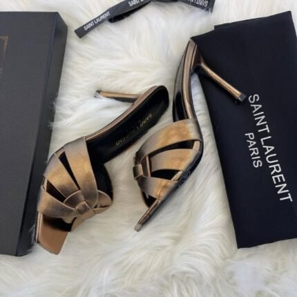 Yves Saint Laurent Calfskin Tribute 85 High Heels Sandals Slides Mules Bronze