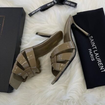 Yves Saint Laurent Calfskin Tribute 85 High Heels Sandals Slides Mules Tan
