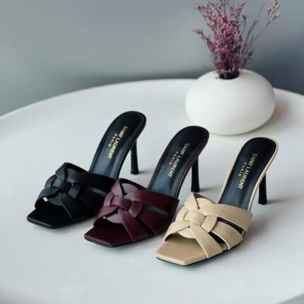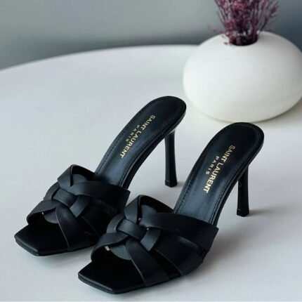 Yves Saint Laurent Calfskin Tribute 85 High Heels Sandals Slides Mules Black