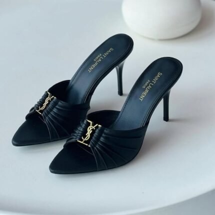 Yves Saint Laurent Babylone 90 Sandals High Heels Pointed Toe Sandals Mules Black