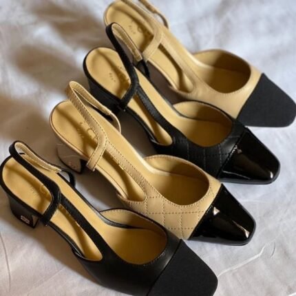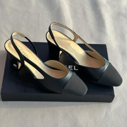 Chanel Goatskin Grosgrain Cap Toe CC Slingback Heels Pumps 39.5 Black