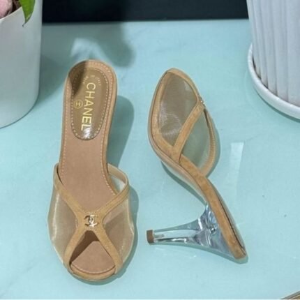 Chanel CC Logo Mesh 37 Heels Pumps Sandals Beige