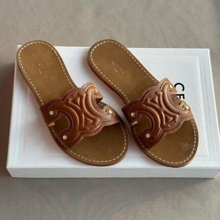Celine Triomphe Calfskin Mules Slides Flats Slip-Ons Sandals Brown