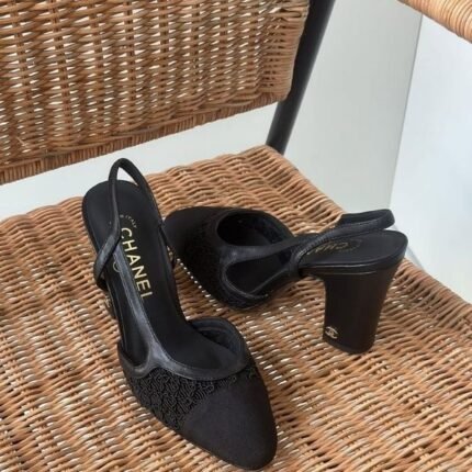 Chanel CC Logo Mesh 37 Heels Pumps Sandals Black