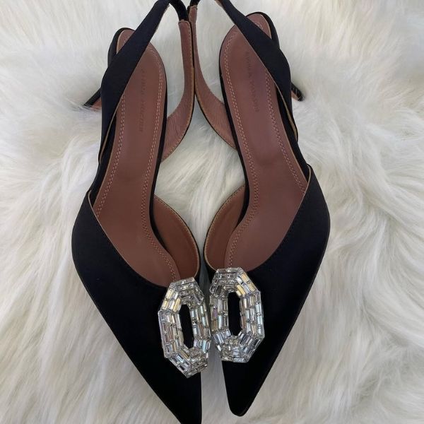 Amina Muaddi Camelia Crystal Buckle Slingback Pumps Pointed Heels Sandals Black