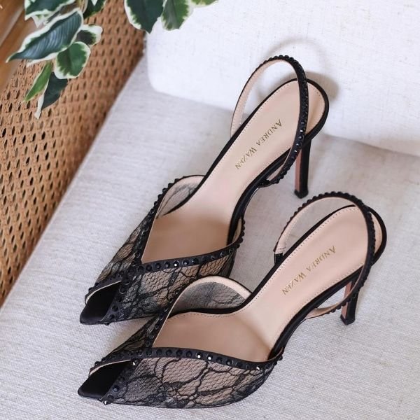 Andrea Wazen Katy Sling Lace 105mm Slingback High Heels Pumps Sandals Black
