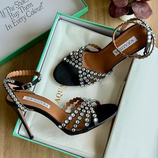 Aquazzura 105mm Tequila High Heels Sandals Pumps Black & Silver