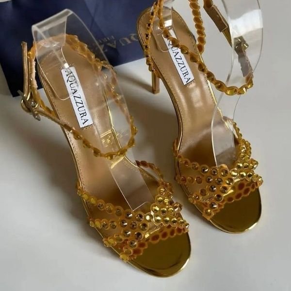 Aquazzura Tequila 105 Plexi Ankle Strap Heels Sandals Pumps Gold