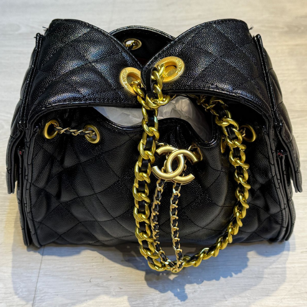 Chanel Mini Small 25 Caviar Leather Hobo Bag Gold Black with Free Perfume