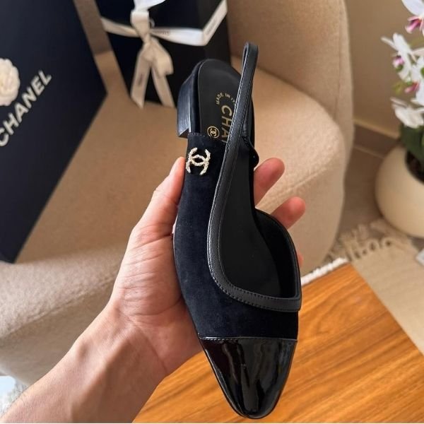 Chanel Suede Calfskin Interlocking CC Logo Slingback Ballet Flats Sandals Black