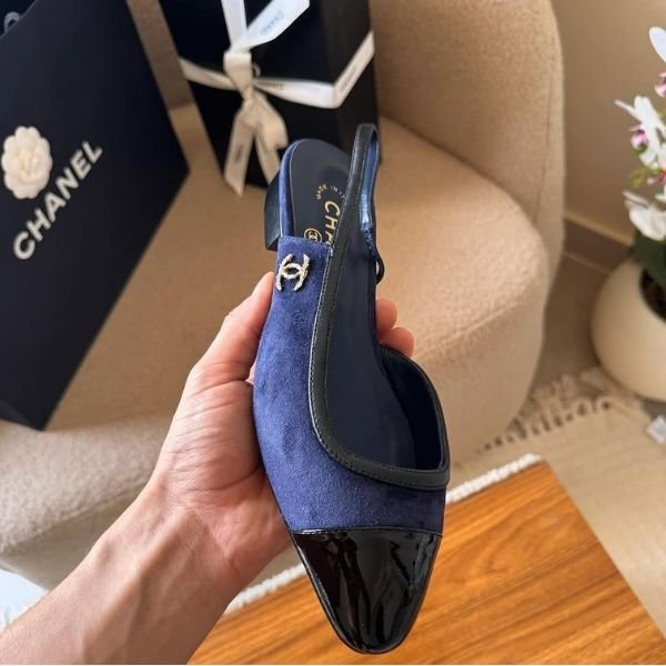 Chanel Suede Calfskin Interlocking CC Logo Slingback Ballet Flats Sandals Blue