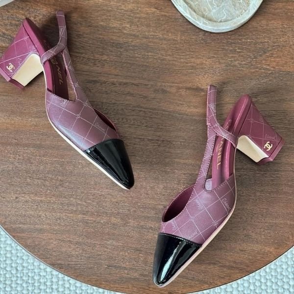 Chanel Tweed Slingback Pumps Heels Sandals 65 Printed Lambskin Patent Leather Burgundy Black
