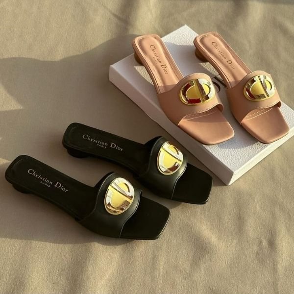 Christian Dior 30 Montaigne Calfskin Heeled Flats Slides Slip-Ons Black
