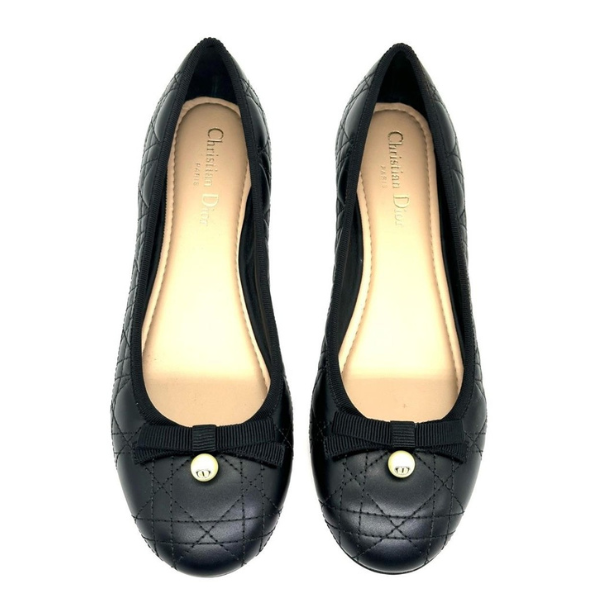 Christian Dior Quilted Cannage Calfskin Ballet Flats Sandals Slip-Ons Black