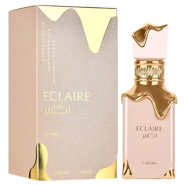 Eclaire by Lattafa Perfumes is a Floral Fruity Gourmand fragrance for women. Eclaire was launched in 2024. Top notes are Caramel, Milk and Sugar; middle notes are Honey and White Flowers; base notes are Vanilla, Praline and Musk.