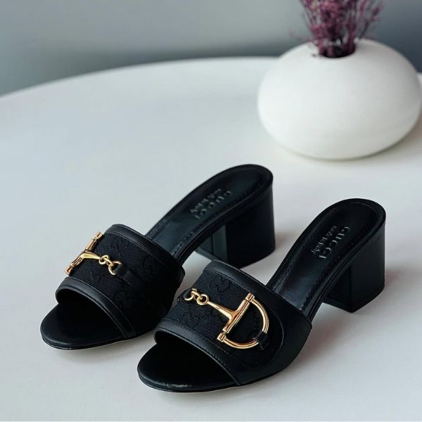 Gucci GG Canvas Leather with Horsebit Block Heels Pumps Sandals Slip-Ons Shoes Black