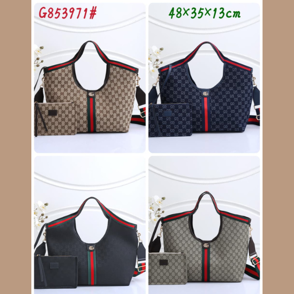 Gucci Giglio GG Leather Canvas Tote Hand Shoulder Bag Crossbody Strap Detachable Pouch Gold Blue Red Trim with Free Perfume W25cm x H20cm x D15cm