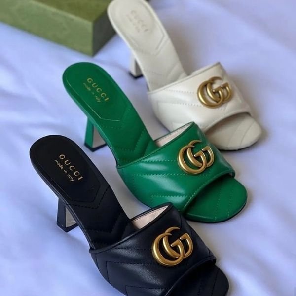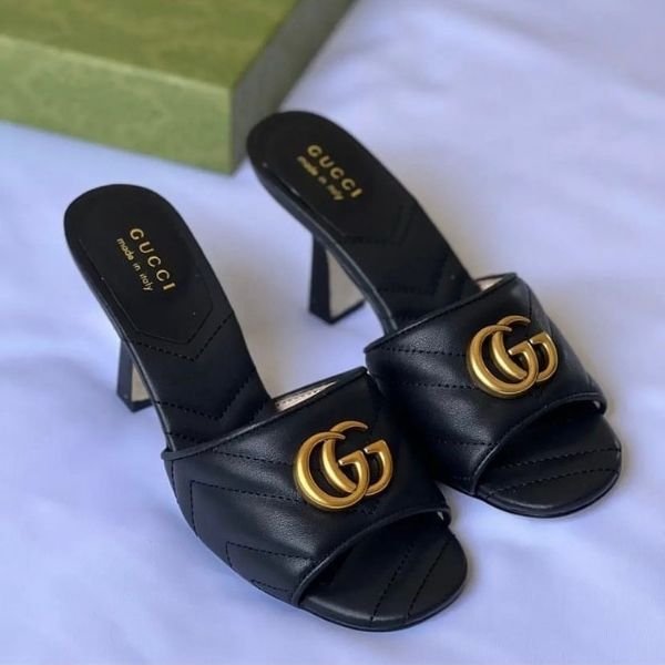 Gucci Marmont GG Padded Quilted Leather Slides Slip-On Sandals Heels Black