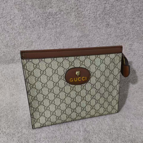 Gucci Neo Vintage GG Supreme Canvas Wristlet Strap Pouch Clutch Beige Tan with Free Perfume