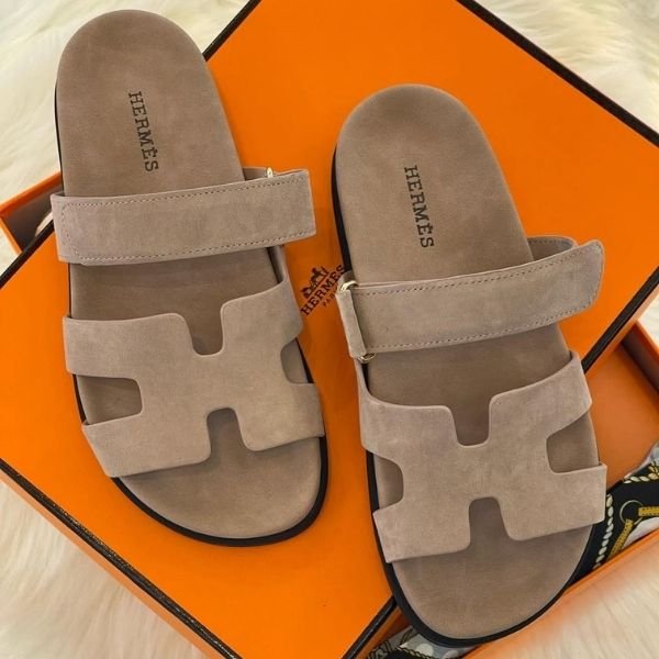 Hermès Chypre Suede Sandals Slippers Slip-On Slides Plain Taupe