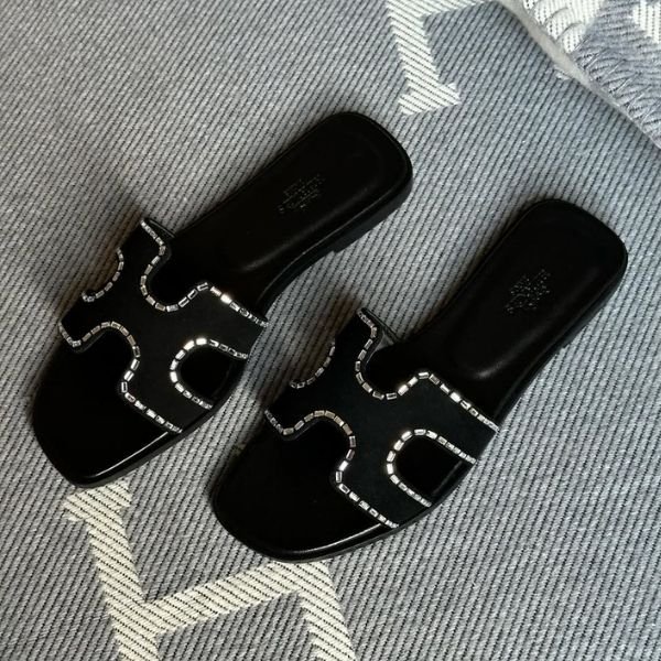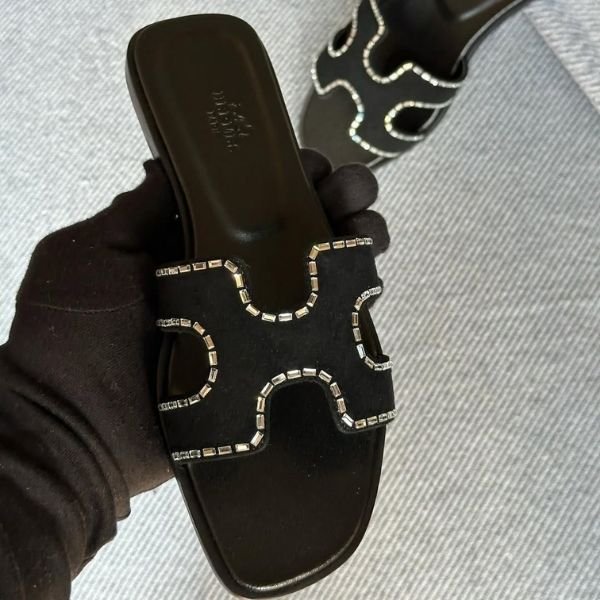 Hermès Embellished Outline Oran Flat Sandals Slip-Ons Slides Black