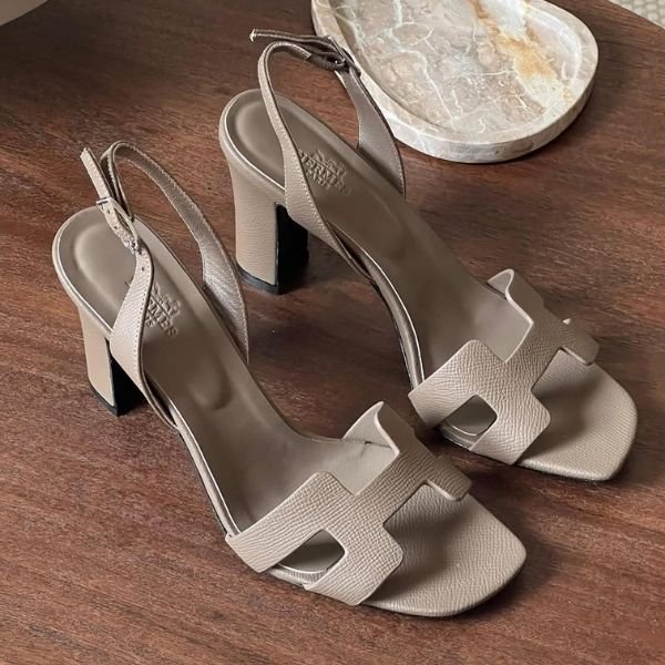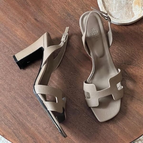 Hermes Eternite 80 Block Heels Sandals With Adjustable Back Strap Taupe