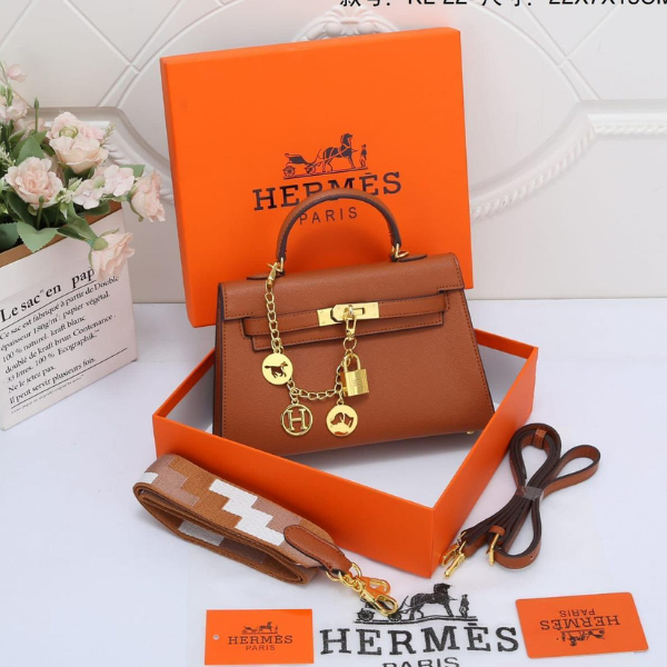 Hermès Kelly 25 Swift Gris Pâle Leather Top Handle Shoulder Hand Bag Gold Hardware Tan with Free Perfume 22x7x15cm