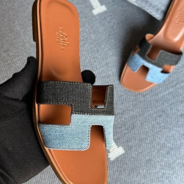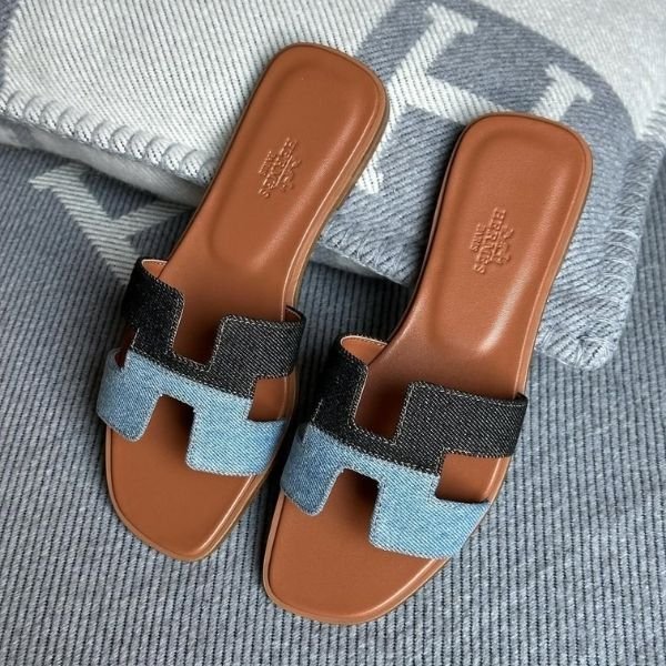 Hermès Oran Flat Sandals Slip-Ons Slides Tapered Denim