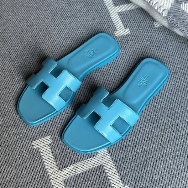 Hermès Oran Flat Sandals Slip-Ons Slides Cyan Blue