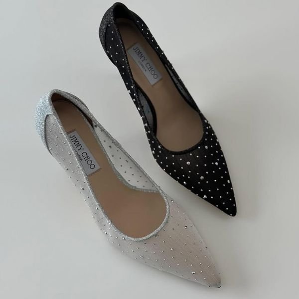 Jimmy Choo Love 85 Mesh Pointed-Toe Pumps with Dégradé Crystals High Heels Pumps Sandals Black