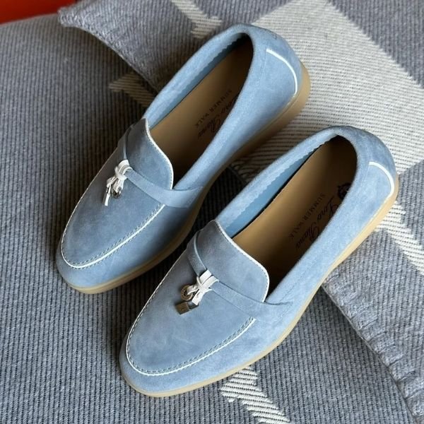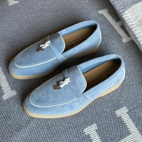 Loro Piana Charm Suede Loafers Slip On Shoes Peach Cyan Blue