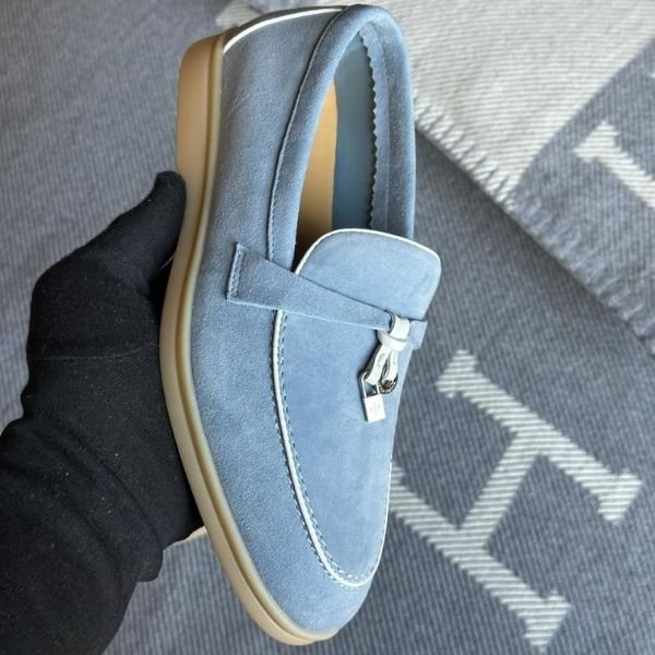 Loro Piana Charm Suede Loafers Slip On Shoes Blue White Lining