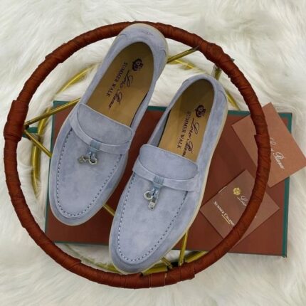 Loro Piana Charm Suede Loafers Slip On Shoes Peach Cyan Blue