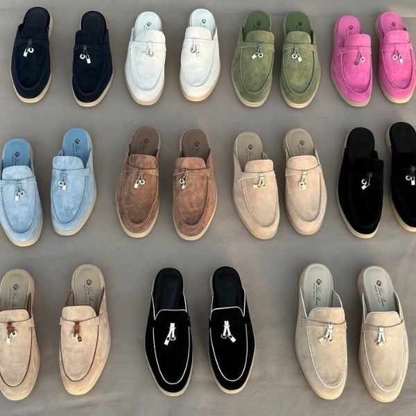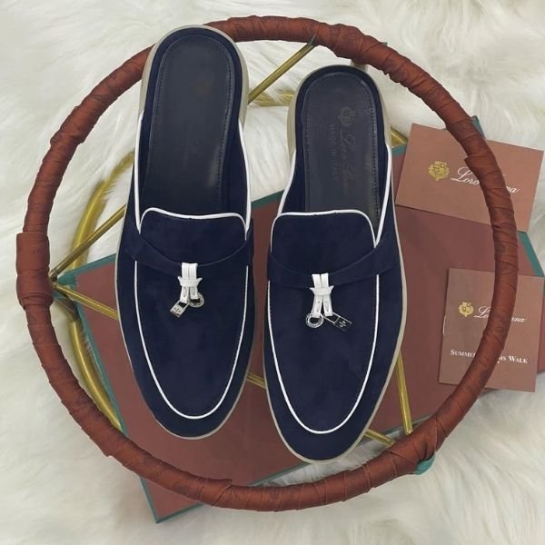 Be the first to review “Loro Piana Charm Suede Mules Slip On Shoes Navy Blue White Lining” Cancel reply