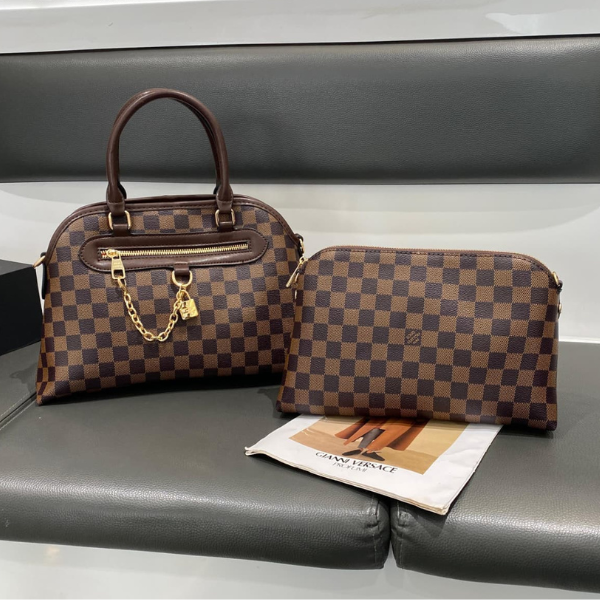 Louis Vuitton Neo Ever More PM Damier Ebène Canvas Leather Embossed Hand Bag and Pouch Brown with Free Perfume